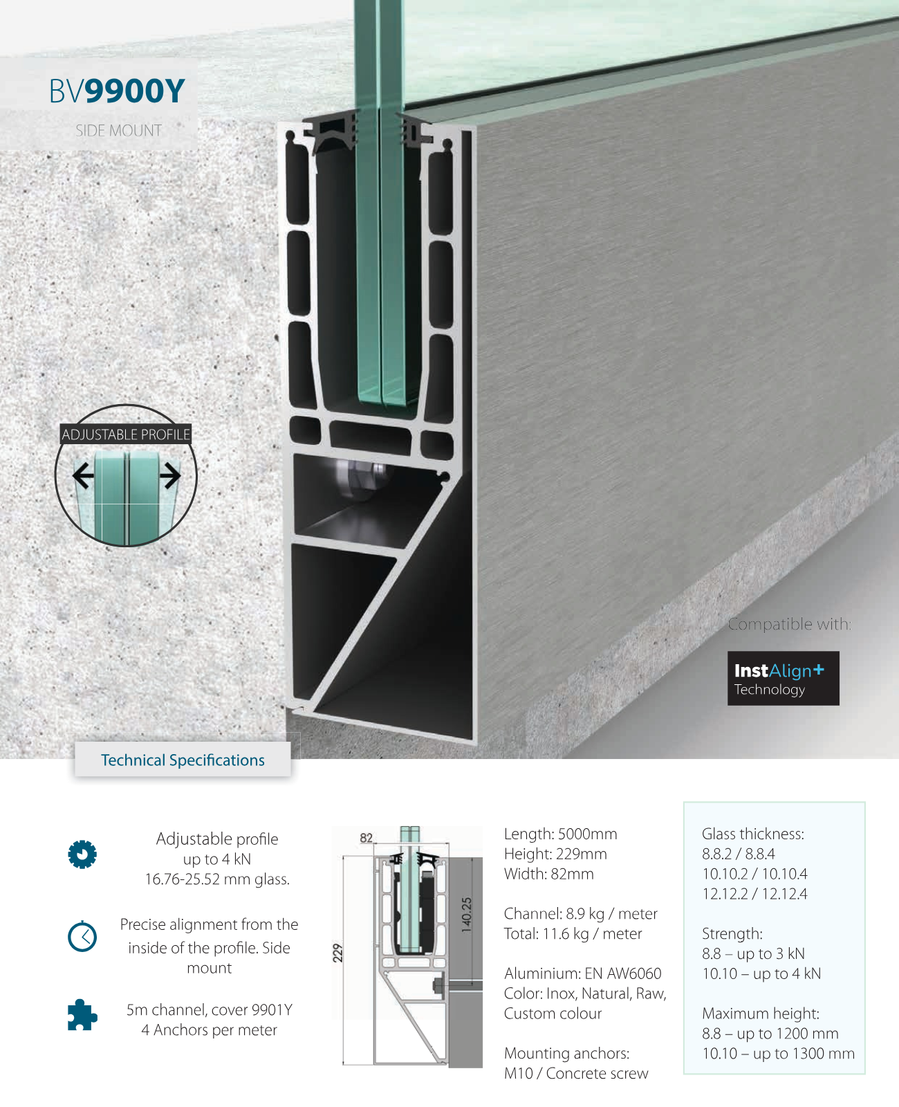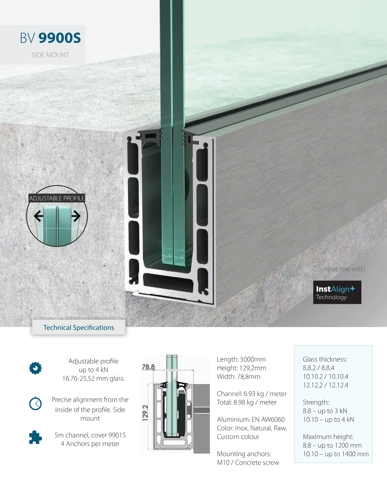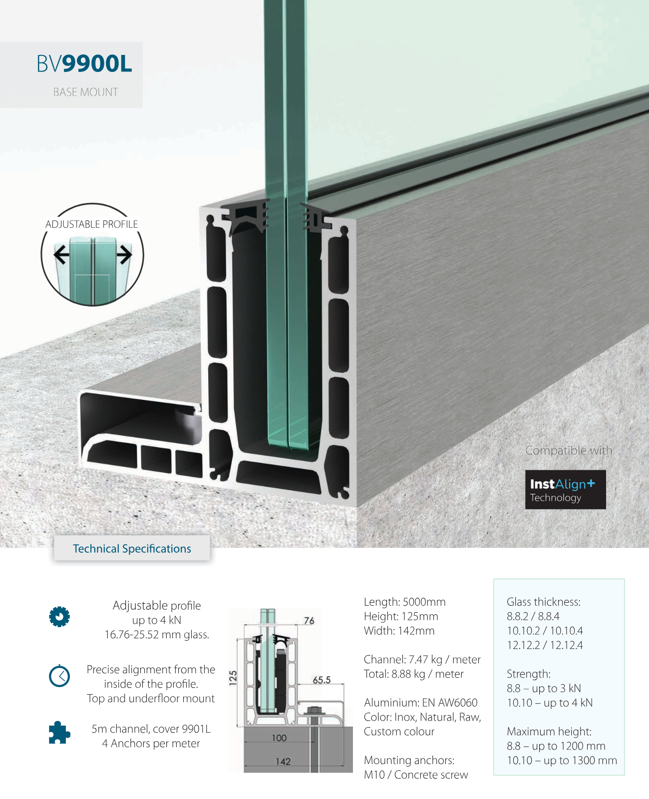 BV9900 is een premium glasbalustradesysteem dat een strak, modern uiterlijk combineert met betrouwbare sterkte. Het zorgt voor perfecte uitlijning van de panelen en is ideaal voor balkons, dakterrassen en openbare gebouwen waar zowel veiligheid als design belangrijk zijn.